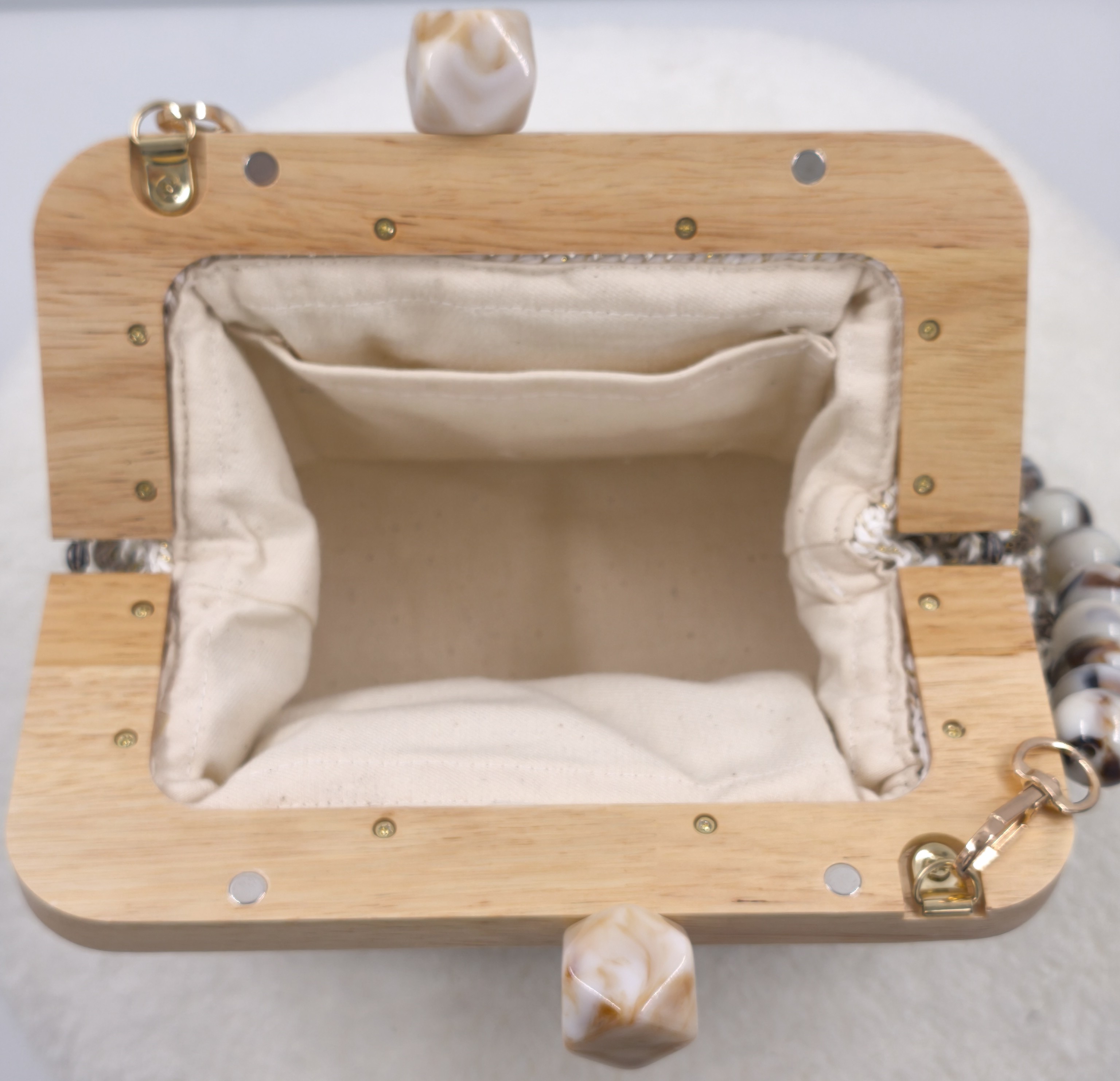 El Örgüsü Burslu Çanta – Ahşap Çerçeve & Boncuk Sap