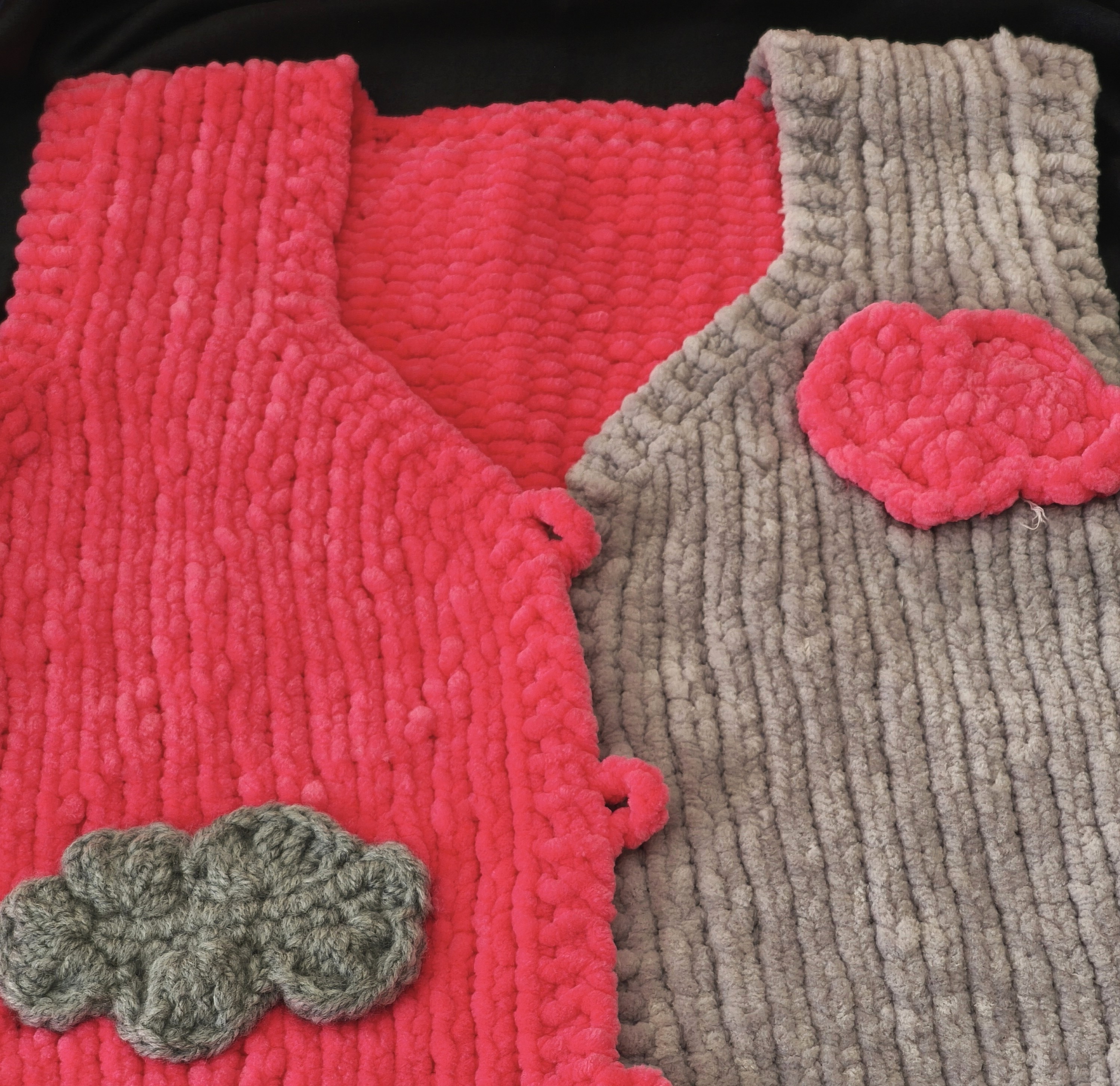 Pembe Gri Bulut Desenli El Yapımı Süveter – Yeni Doğan